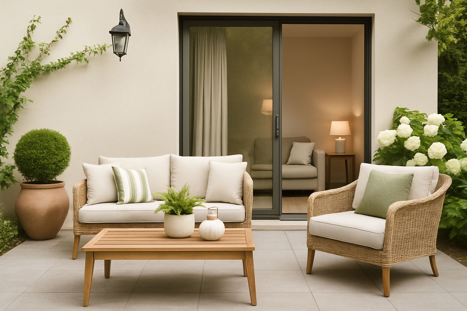 Loungesets, Klappstühle, Tische & Aufbewahrung – wetterfest und stilvoll für draußen.