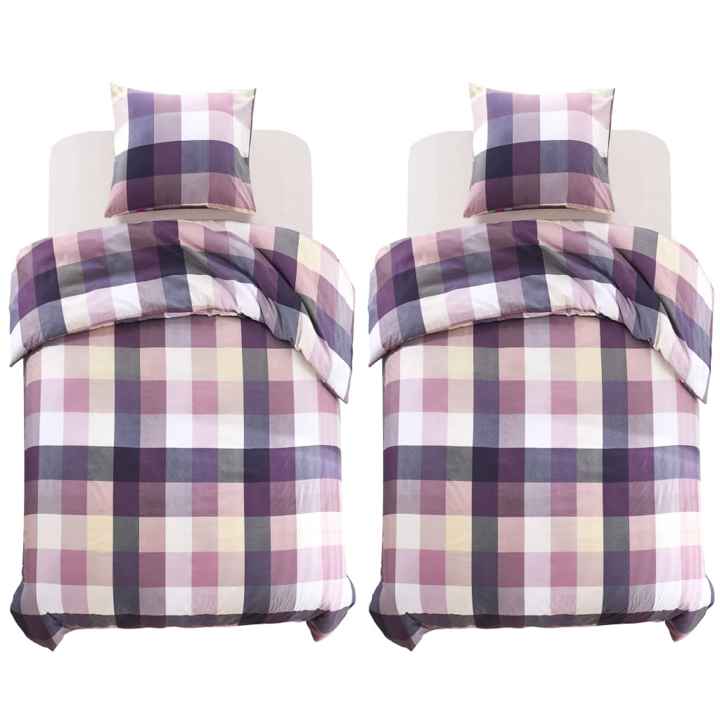 Bettwäsche-Set Lila Kariert 155×220/80×80 cm