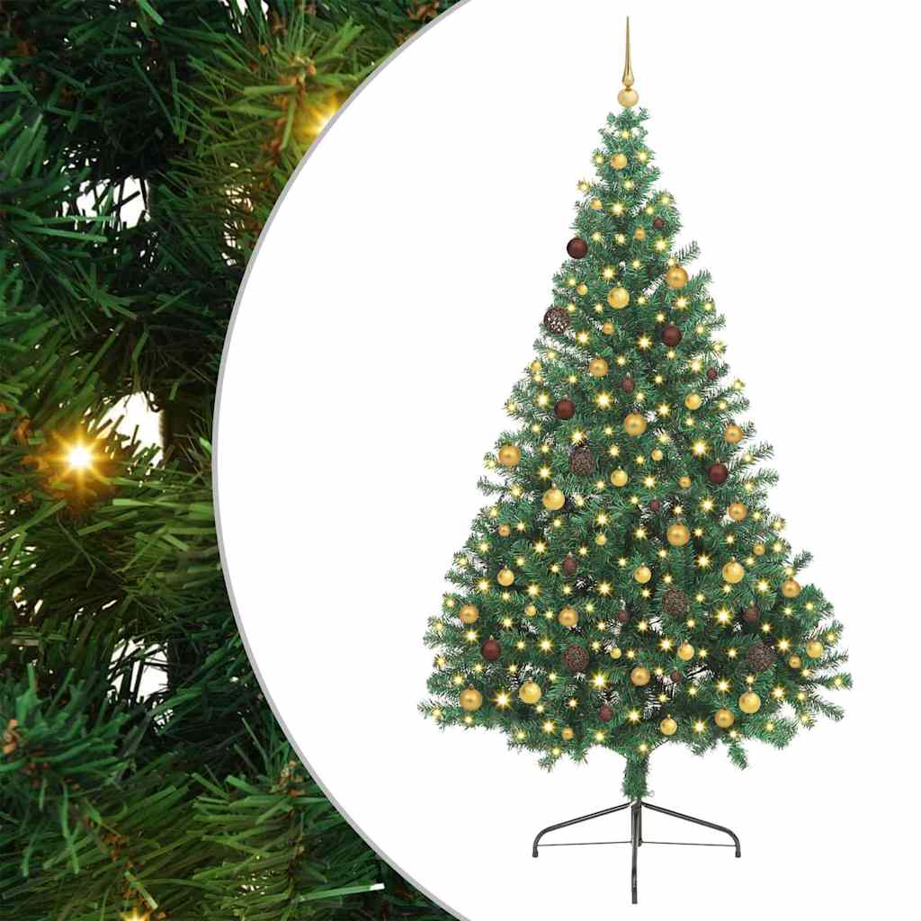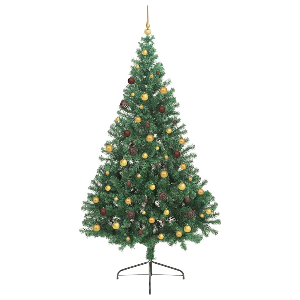 Künstlicher Halb-Weihnachtsbaum Beleuchtung Kugeln Grün 120 cm