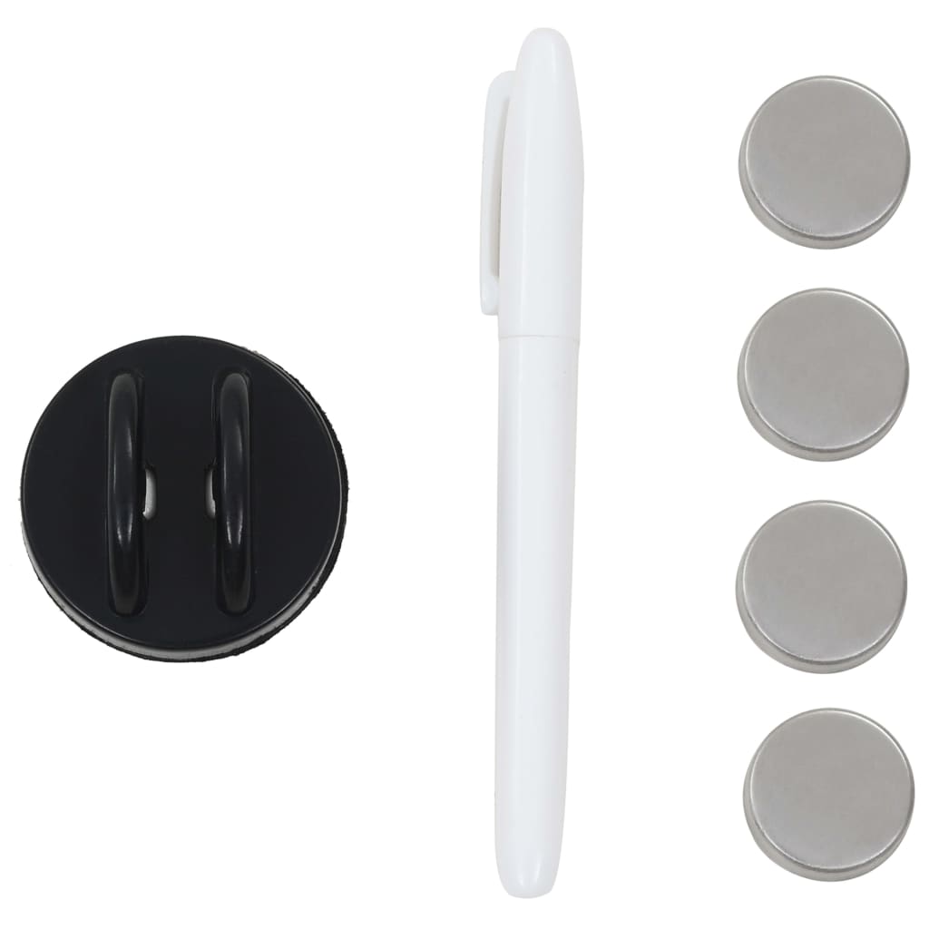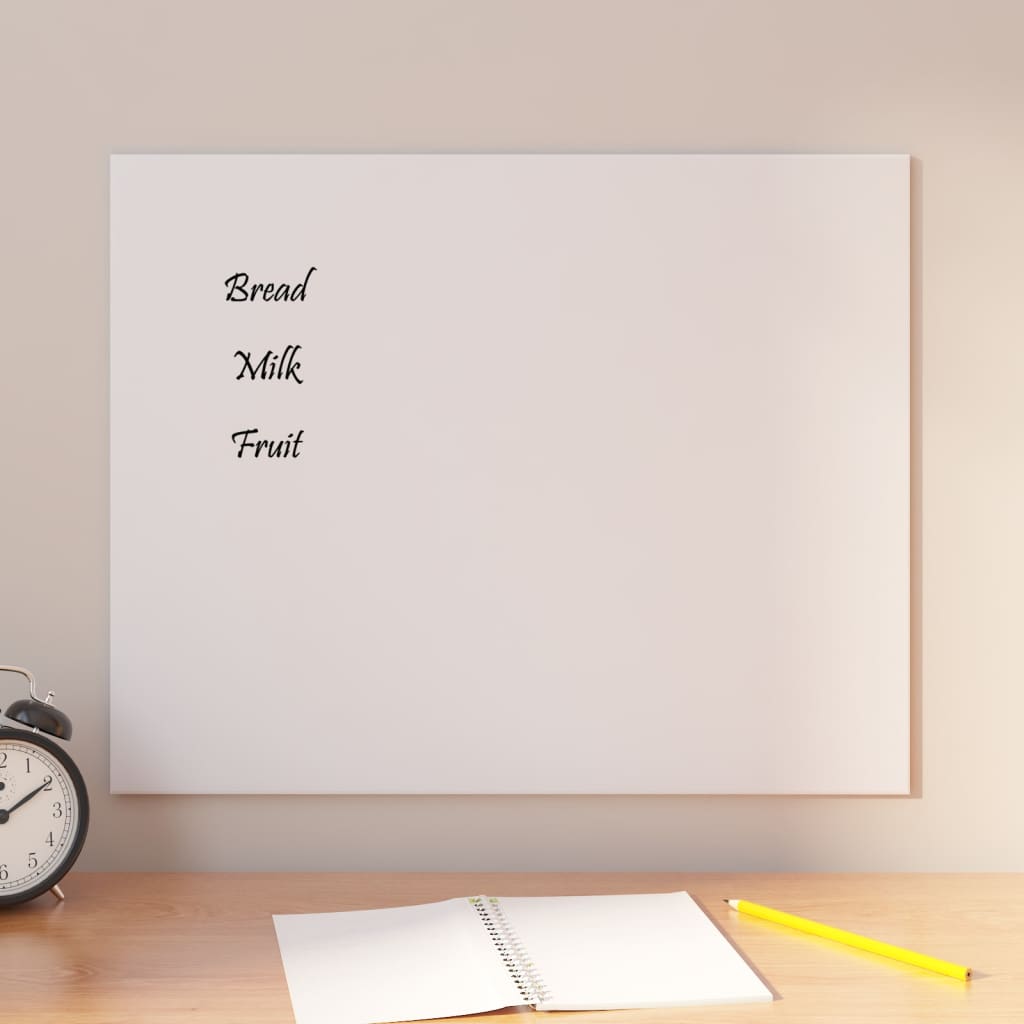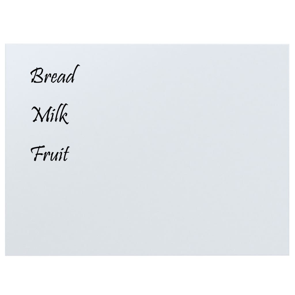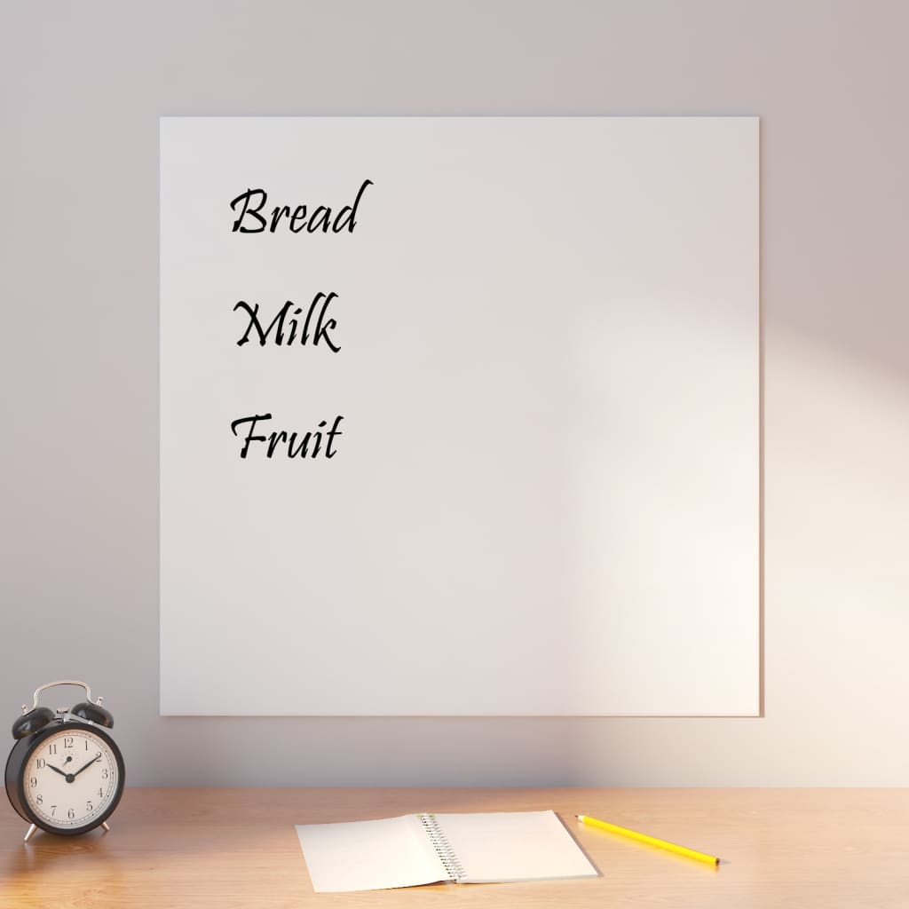 Die magnetische Trockenlöschtafel aus Glas bietet alle Vorteile einer traditionellen Tafel in einer moderneren Form. Die Glastafel besteht aus gehärtetem Sicherheitsglas, das nicht so leicht Flecken, Kratzer oder Dellen aufweist. Mit dem mitgelieferten Magneten kannst du Papiere oder Notizen an der Tafel befestigen. Darüber hinaus kannst du mit einem weißen Trockenlöschmarker auf der Magnettafel schreiben und danach die Tafel mit dem mitgelieferten Tafelwischer leicht reinigen. Das erforderliche Montagematerial ist im Lieferumfang enthalten, sodass sich die Tafel leicht an jeder Wand aus deinem Zuhause, Büro oder deiner Schule befestigen lässt. Die Schreibtafel lässt sich auch leicht montieren.