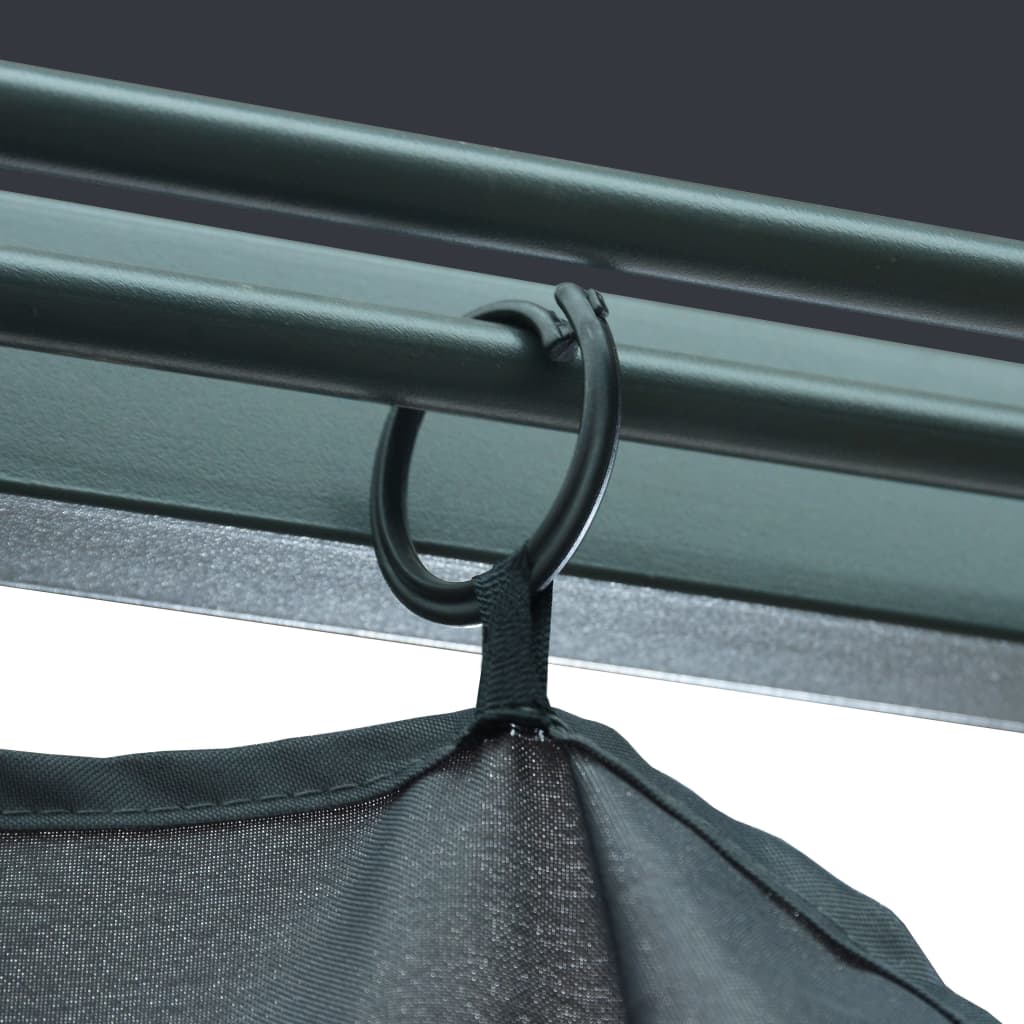 Dieser Pavillon mit Vorhängen hat ein klassisches, elegantes Design. Er wird der perfekte Sonnenschutz für Veranstaltungen im Freien sein, wie zum Beispiel Abendessen, Grillpartys, Familienfeiern usw. Das Dach aus Oxford-Stoff mit PA-Lackierung schützt Sie vor blendendes Licht und schädlichen UV-Strahlen. Der Pavillon besitzt eine solide Konstruktion aus starkem Aluminium und Stahl und ist dadurch rostbeständig und sehr stabil. Zudem wird der Pavillon mit 4 Seitenteilen geliefert, die bei schlechtem Wetter nach unten gezogen werden können. Netzfenster sind ebenfalls dabei, um Insekten fernzuhalten und gleichzeitig eine gute Luftzirkulation zu gewährleisten. Die mitgelieferten Klettverschlüsse sorgen für eine einfache Befestigung. Darüber hinaus schafft die Lichterkette eine gemütliche Atmosphäre im Garten bei Sonnenuntergang. Die Leuchten sind umweltfreundlich, da sie tagsüber durch Sonnenenergie aufgeladen werden. Der Pavillon lässt sich mit den mitgelieferten Befestigungsmaterialien leicht am Boden befestigen. HINWEIS: Dieses Produkt sollte NIEMALS bei schlechtem Wetter wie starkem Wind, starkem Regen, Schnee, Sturm usw. verwendet werden.