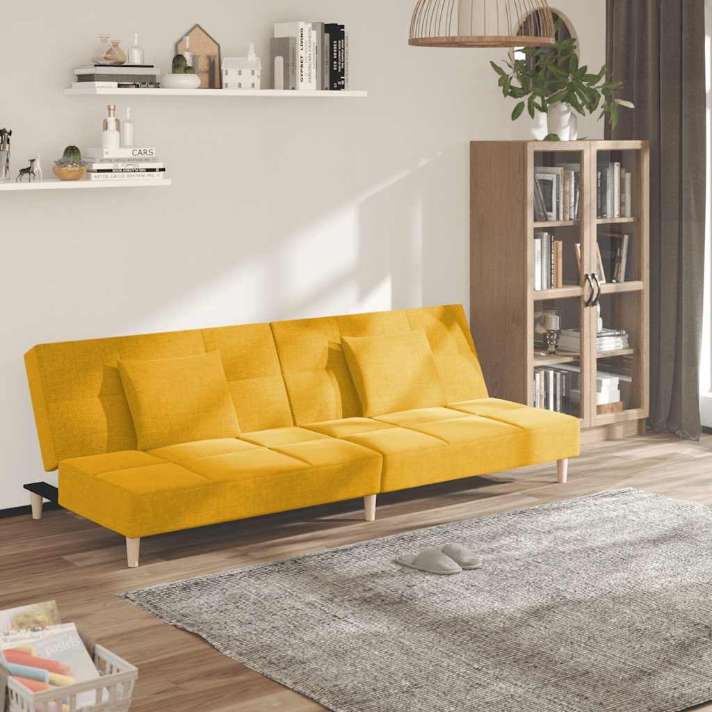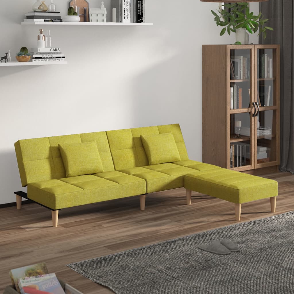 Dieses Schlafsofa ist die perfekte Lösung für die Unterbringung von Übernachtungsgästen und bietet tagsüber eine bequeme Sitzgelegenheit. Erstklassiges Material: Festes Gewebe ist außergewöhnlich bequem und fühlt sich weich an. Darüber hinaus ist es langlebig und besticht durch sein schlichtes und elegantes Aussehen.Robust und stabil: Der Holzrahmen sorgt für Robustheit und Stabilität.Vielseitig einsetzbar: Das Schlafsofa lässt sich ganz schnell und einfach von einem Sofa in ein Bett und wieder zurück verwandeln. Dabei können Sie die zwei separaten Kissen teilweise oder vollständig hinunterbringen, um den idealen Platz für ein Nickerchen oder ein Doppelbett zu schaffen.Zusätzlicher Komfort: Der Hocker bietet Platz zum Ausruhen der Füße am Ende des Tages, kann aber auch als zusätzliche Sitzgelegenheit im Wohnzimmer oder Eingangsbereich dienen.Zusätzliche Kissen: Zu Ihrer Bequemlichkeit sind auch zusätzliche Kissen im Lieferumfang enthalten.