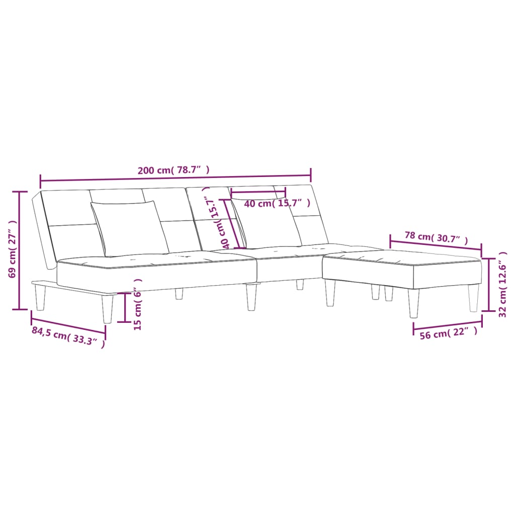 - Gesamtmaße des Sofas: 200 x 84,5 x 69 cm (L x B x H)