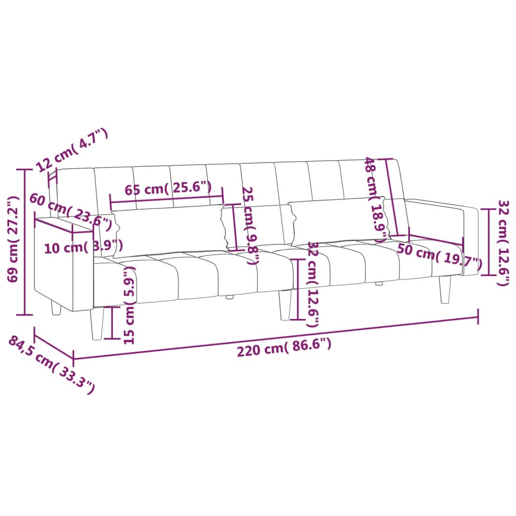 - Gesamtabmessungen des Sofas: 220 x 84,5 x 69 cm (L x B x H)