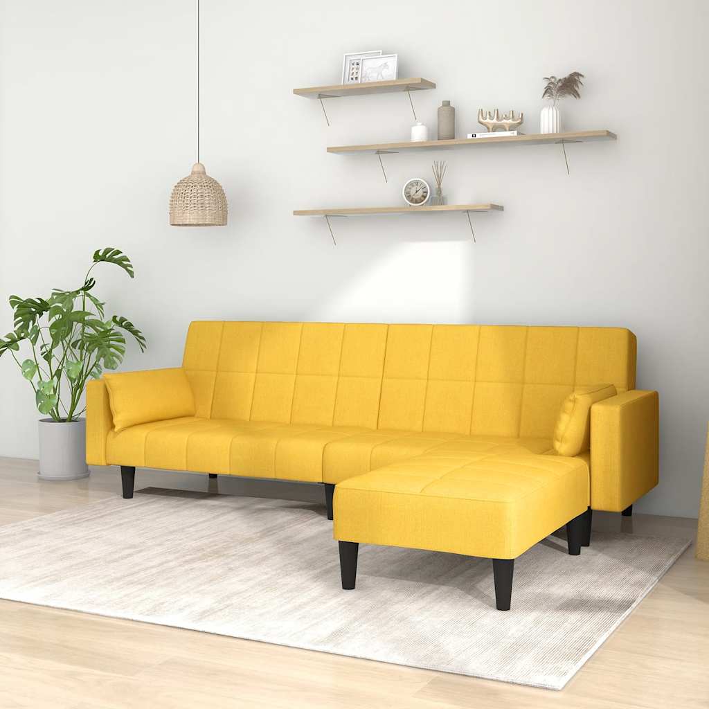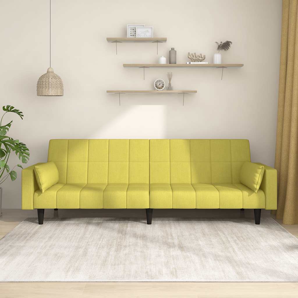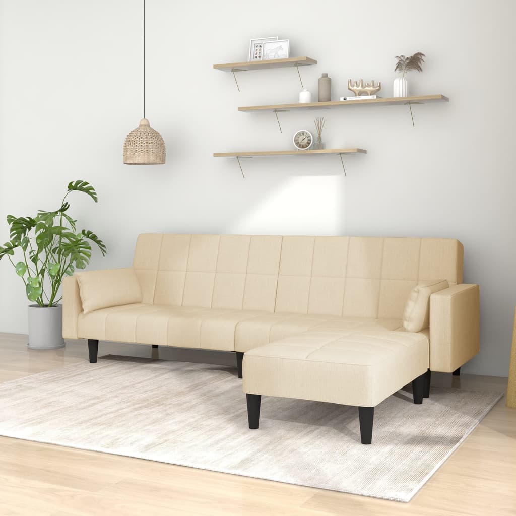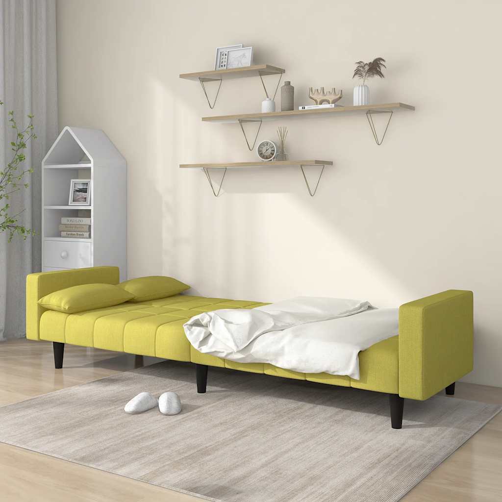 Dieses Schlafsofa ist die perfekte Lösung für die Unterbringung von Übernachtungsgästen und bietet tagsüber eine bequeme Sitzgelegenheit. Erstklassiges Material: Stoff ist außergewöhnlich bequem und fühlt sich weich an. Darüber hinaus ist er langlebig und besticht durch sein schlichtes und elegantes Aussehen.Robust und stabil: Der Holzrahmen sorgt für Robustheit und Stabilität.Vielseitig einsetzbar: Das Schlafsofa lässt sich ganz schnell und einfach von einem Sofa in ein Bett und wieder zurück verwandeln. Dabei können Sie die zwei separaten Kissen teilweise oder vollständig hinunterbringen, um den idealen Platz für ein Nickerchen oder ein Doppelbett zu schaffen.Zusätzlicher Komfort: Der Hocker bietet Platz zum Ausruhen der Füße am Ende des Tages, kann aber auch als zusätzliche Sitzgelegenheit im Wohnzimmer oder Eingangsbereich dienen.Zusätzliche Kissen: Zu Ihrer Bequemlichkeit sind auch zusätzliche Kissen im Lieferumfang enthalten.