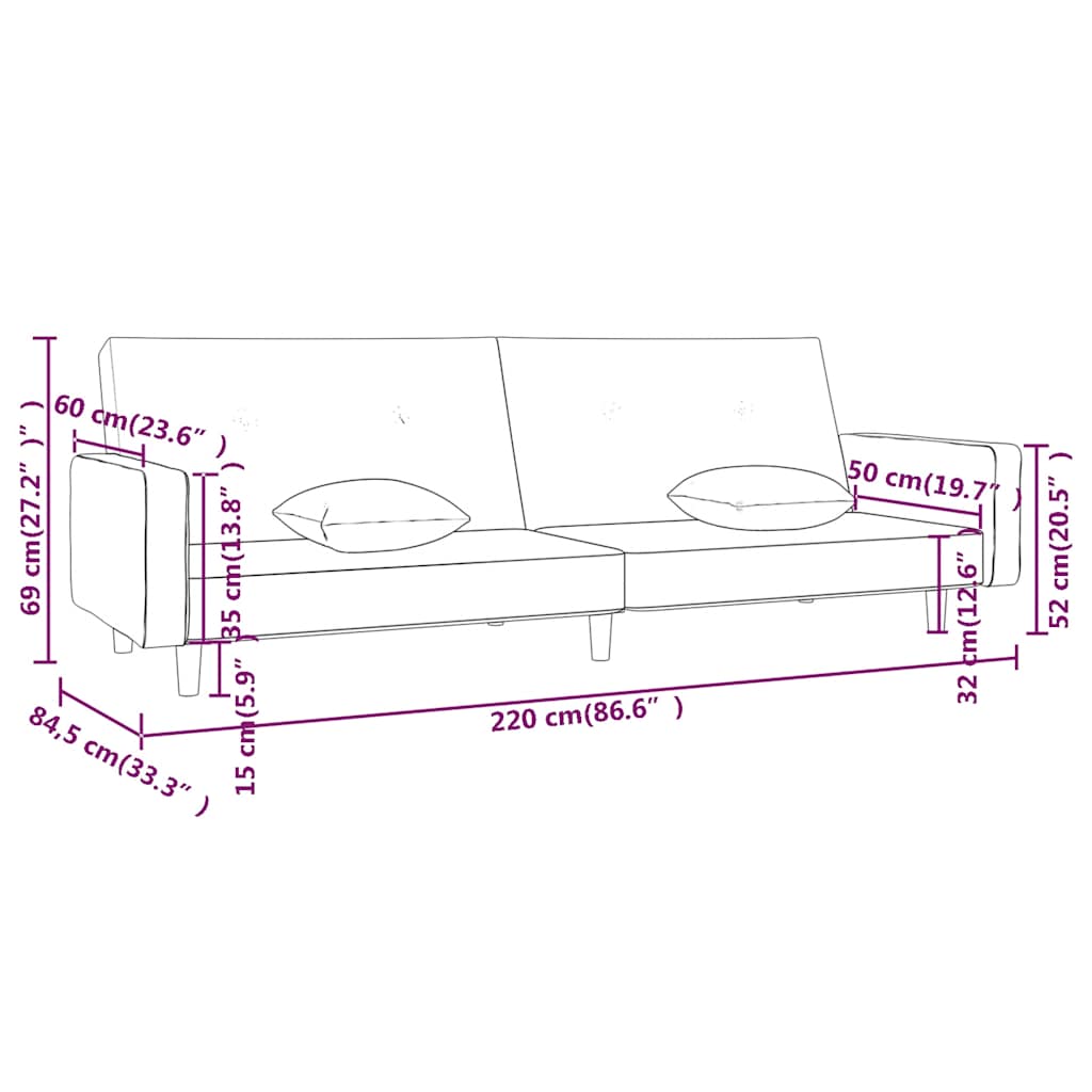 - Abmessungen des Sofas: 220 x 84,5 x 69 cm (B x T x H)