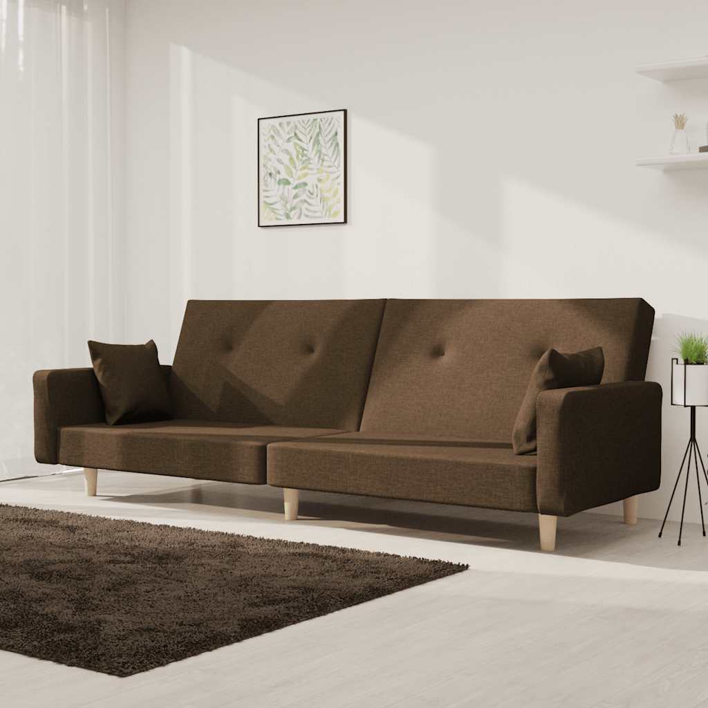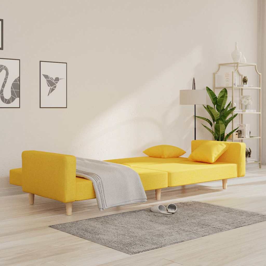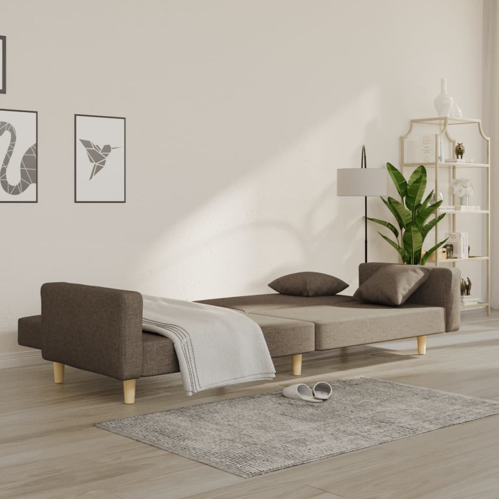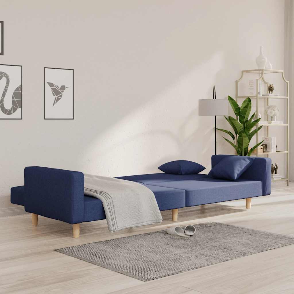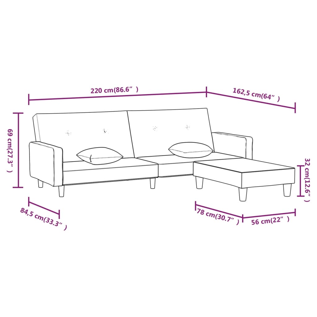 Dieses multifunktionale Schlafsofa mit Hocker stellt eine perfekte Kombination aus einem Luxus-Sofa und einem komfortablen Gästebett dar, was es zu einer praktischen und auffälligen Ergänzung zu jedem Interieur macht! Der Rahmen aus Sperrholz trägt zur Robustheit des Sofas bei, während die dicke Polsterung aus Schaumstoff für zusätzlichen Komfort sorgt. Das Gästebett lässt sich ganz schnell und einfach von einem Sofa in ein Bett und wieder zurück verwandeln. Dabei können Sie die zwei separaten Kissen teilweise oder vollständig hinunterbringen, um den idealen Platz für ein Nickerchen oder ein Doppelbett zu schaffen. Darüber hinaus bietet der Hocker einen idealen Platz zum Ausruhen der Füße am Ende des Tages oder eine zusätzliche Sitzgelegenheit in Ihrem Wohnzimmer oder Flur. Mit seinem modernen Design passt dieses Schlafsofa mit Hocker zu jeder Inneneinrichtung.