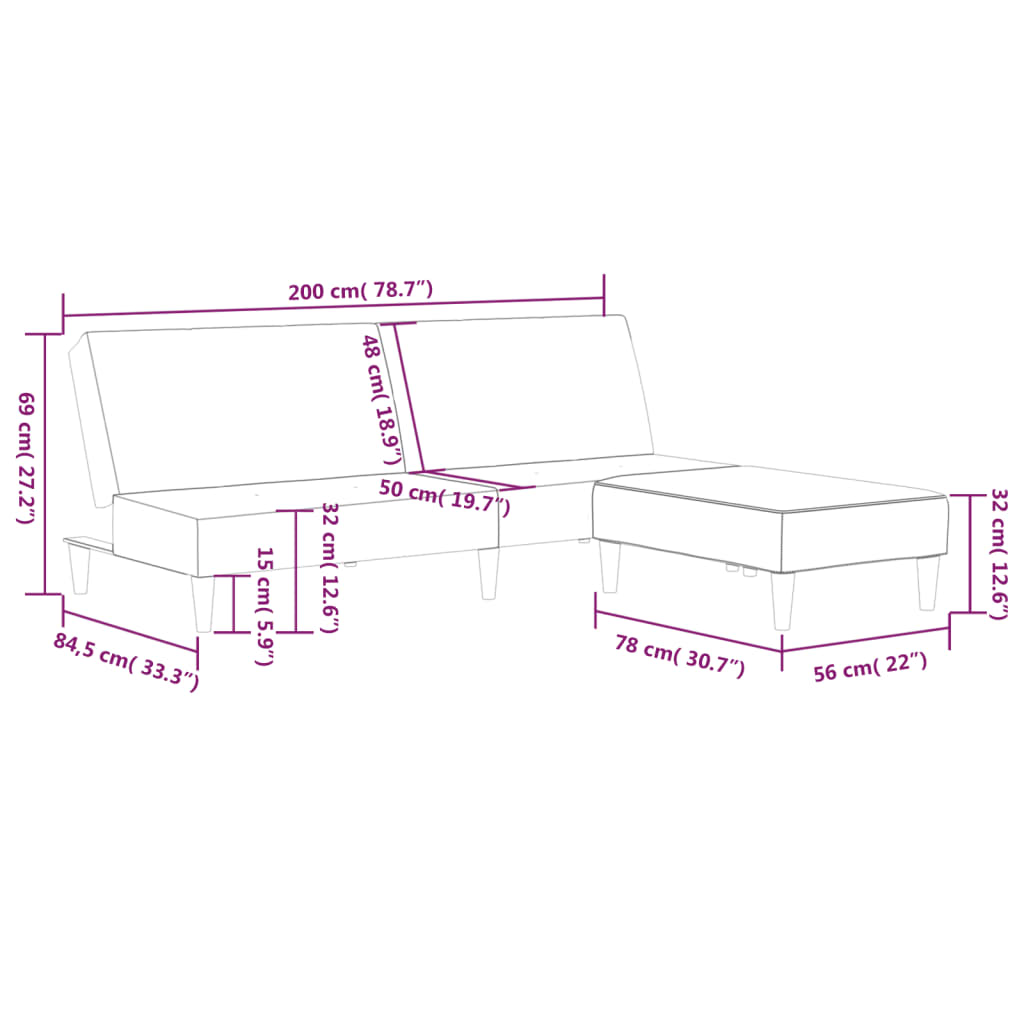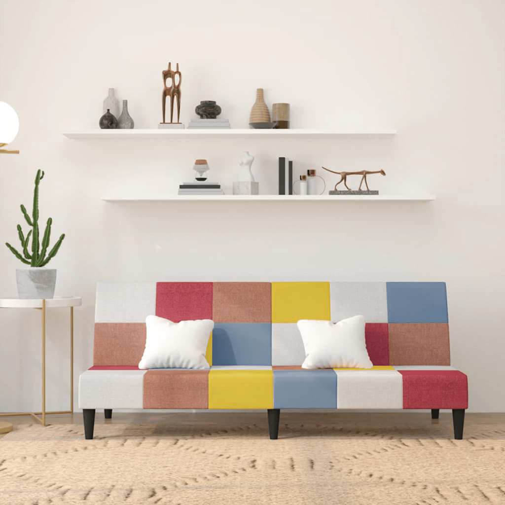 Schlafsofa 2-Sitzer mit Fußhocker Mehrfarbig Stoff