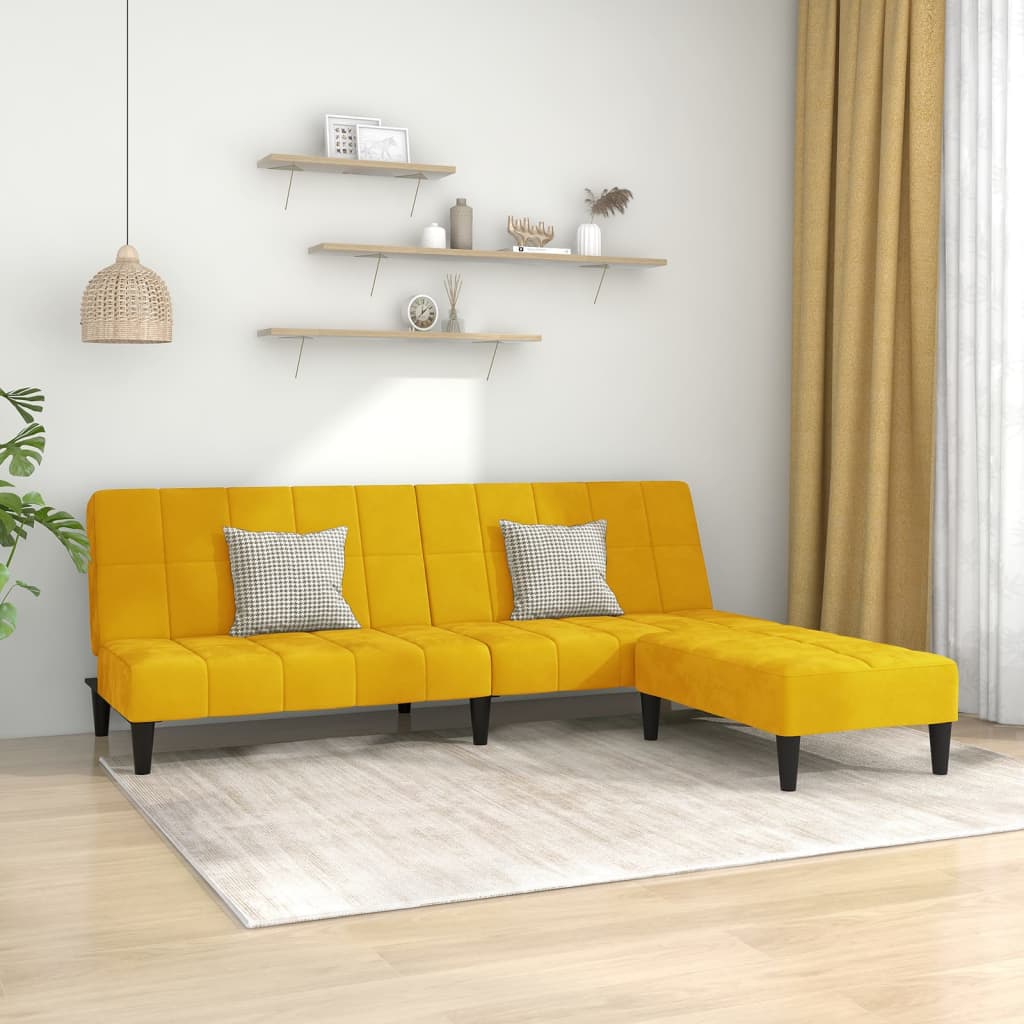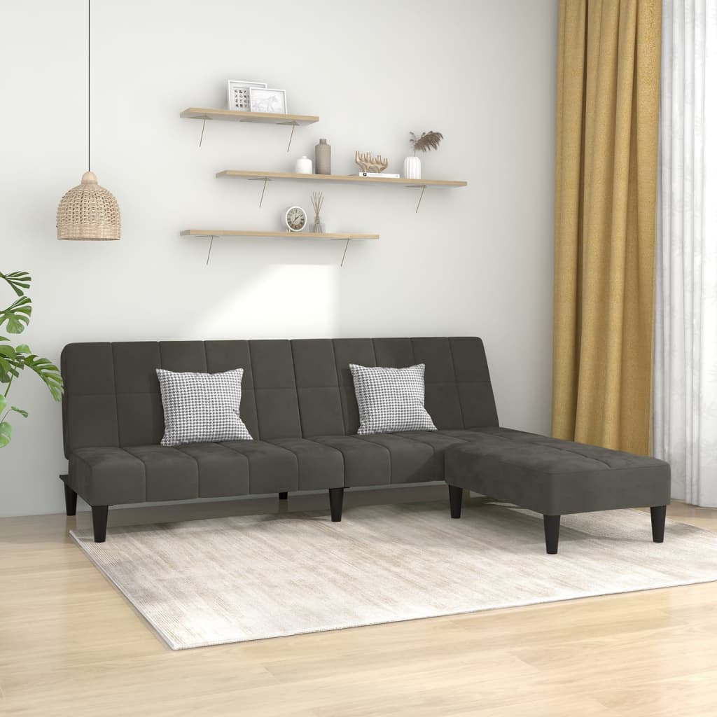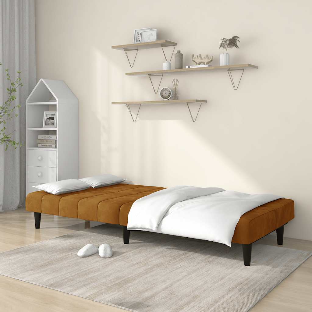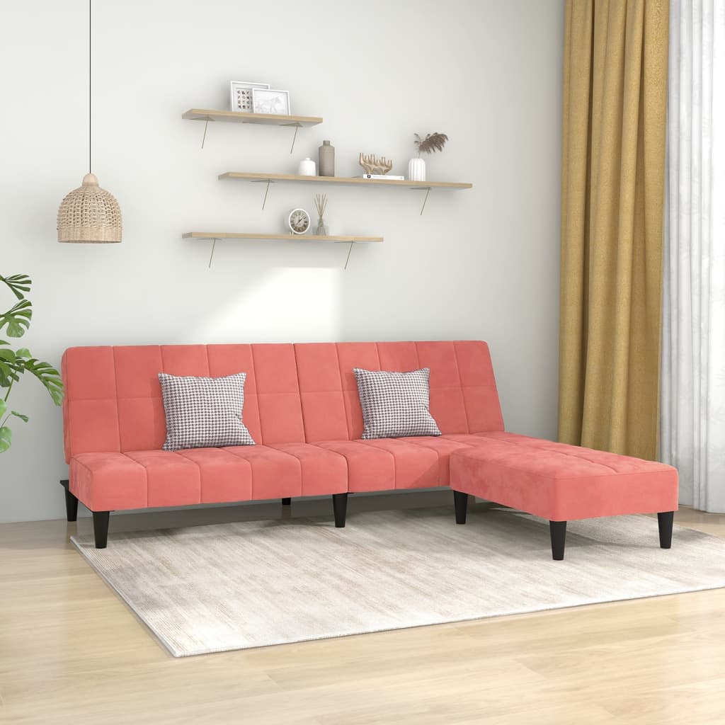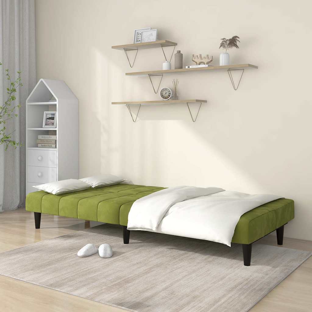 Dieses Schlafsofa ist die perfekte Lösung für die Unterbringung von Übernachtungsgästen und bietet tagsüber eine bequeme Sitzgelegenheit. Erstklassiges Material: Samt besitzt eine zarte Textur und fühlt sich weich und angenehm an.Robust und stabil: Der Holzrahmen sorgt für Robustheit und Stabilität.Vielseitig einsetzbar: Das Schlafsofa lässt sich ganz schnell und einfach von einem Sofa in ein Bett und wieder zurück verwandeln. Dabei können Sie die zwei separaten Kissen teilweise oder vollständig hinunterbringen, um den idealen Platz für ein Nickerchen oder ein Doppelbett zu schaffen.Zusätzlicher Komfort: Der Hocker bietet Platz zum Ausruhen der Füße am Ende des Tages, kann aber auch als zusätzliche Sitzgelegenheit im Wohnzimmer oder Eingangsbereich dienen.