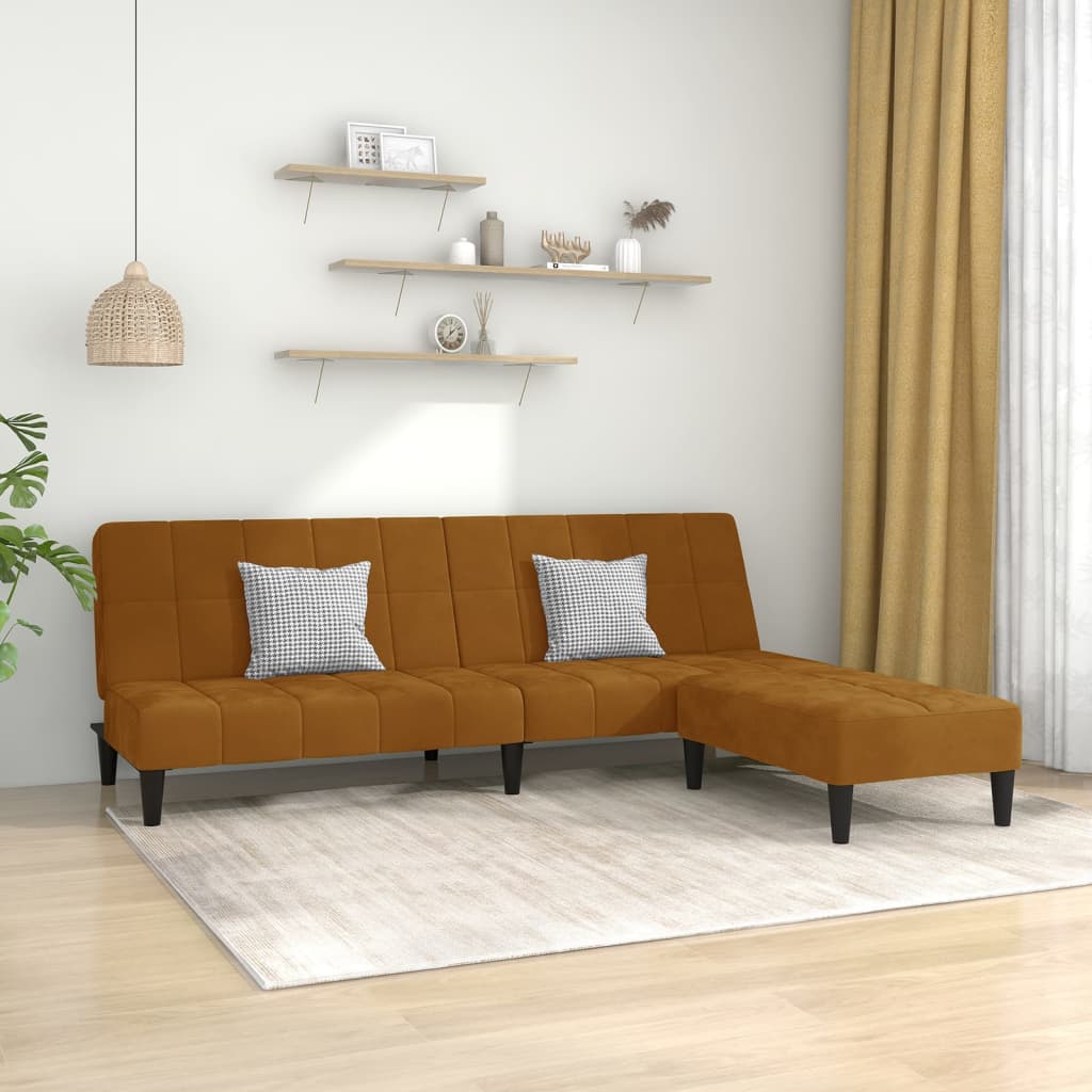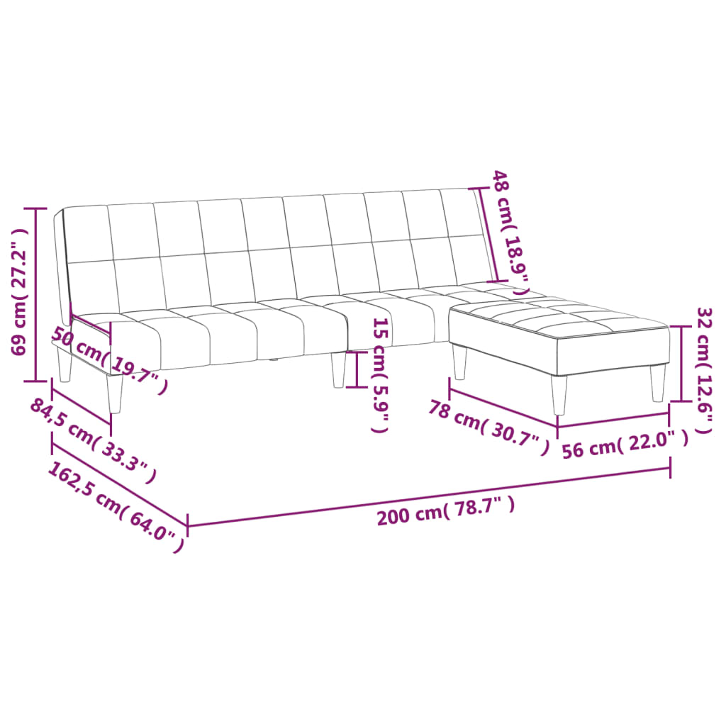 Schlafsofa 2-Sitzer mit Hocker Blau Samt