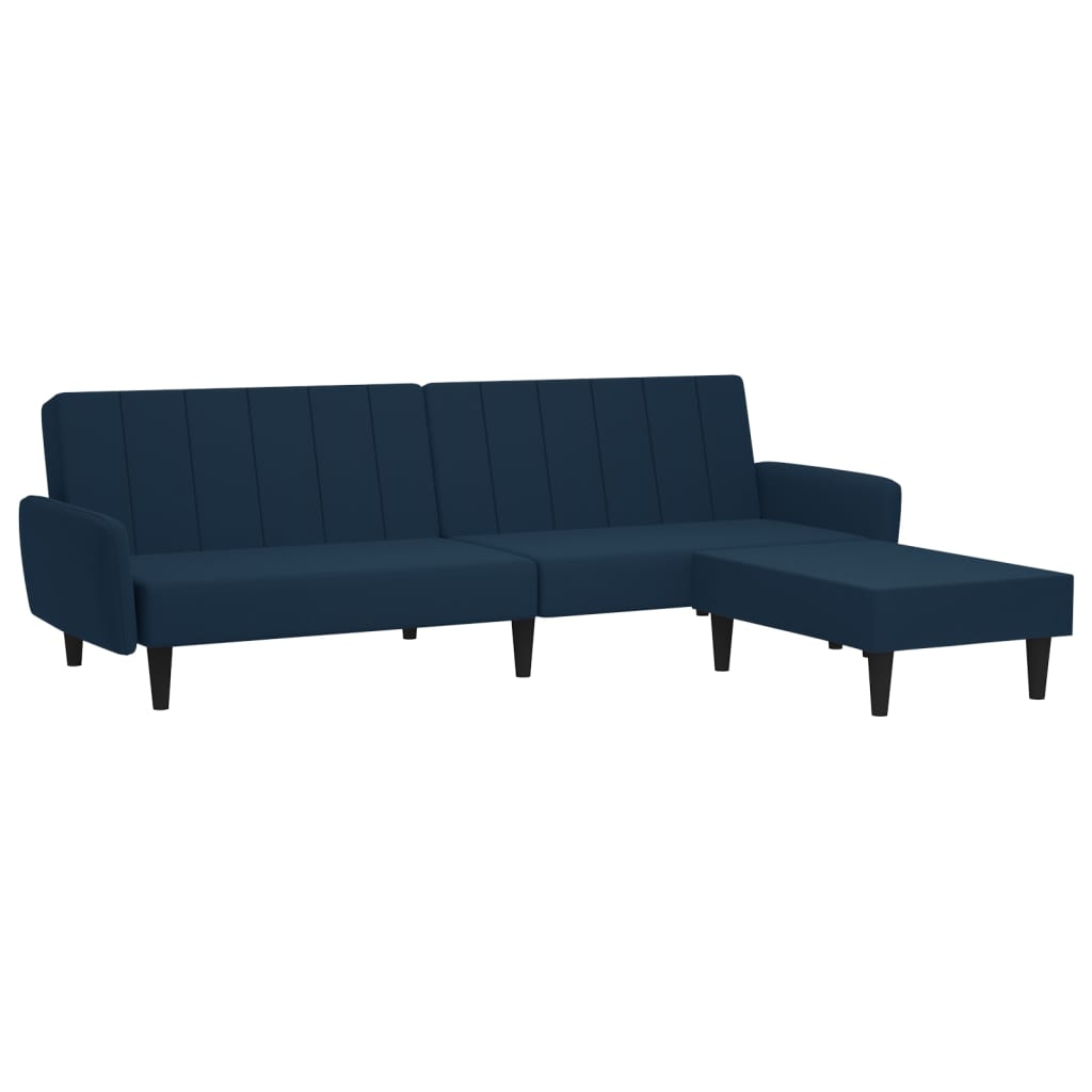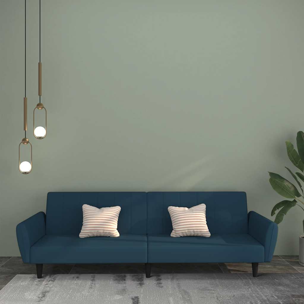 Schlafsofa 2-Sitzer mit Hocker Blau Samt