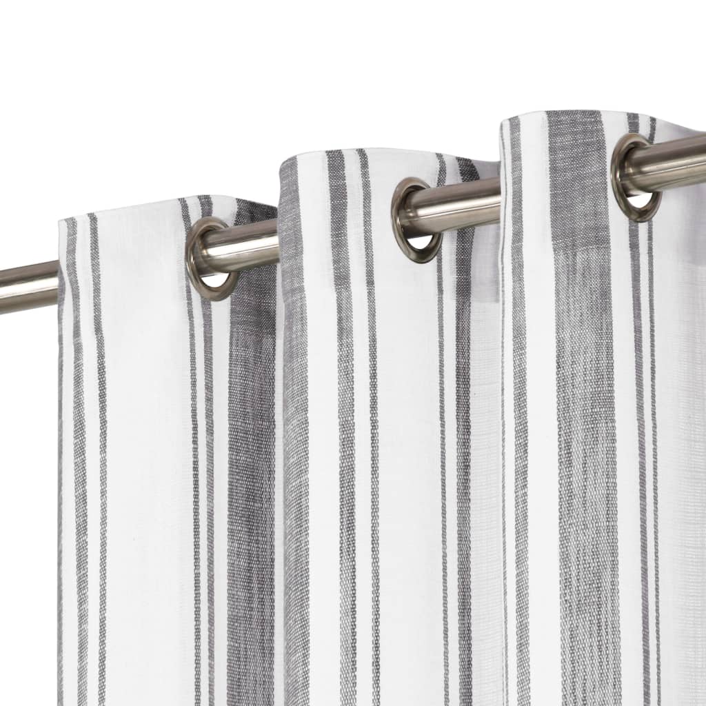 Diese eleganten Vorhänge werden hervorragend in Ihrem Wohnzimmer, Schlafzimmer, Büro usw. aussehen. Sie bieten Ihnen die nötige Privatsphäre und lassen gleichzeitig etwas Tageslicht durchscheinen. Dank der Metallringe können die Vorhänge problemlos an jeder Art von Gardinenstange angebracht werden. Die Vorhänge sind aus hochwertigem Baumwollmaterial gefertigt und können in der Maschine gewaschen werden. Die Lieferung erfolgt inklusive 2 Vorhänge. Bitte beachten Sie, dass die Vorhangstange nicht im Lieferumfang enthalten ist.