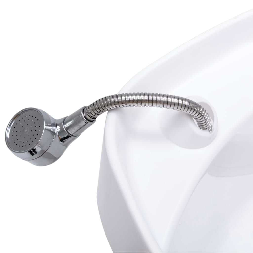 Dieser Rückwärtswaschsessel mit Friseurstuhl ist das ideale Zubehör für Friseurssalons, die es Ihren Kunden ermöglicht, sich beim Shampoonieren und Frisieren vollkommen zu entspannen. Diese Friseurwaschanlage ist aus Kunstleder gefertigt und mit Schaumstoff gepolstert, wodurch sie rutschfest ist und sich bequem verstellen lässt. Das Stahlgestell mit breiten Armlehnen verleiht diesem Waschsessel hohe Stabilität. Darüber hinaus sorgt das weiche Design der Nackenstütze für die bequemste Liegeposition. Das tiefe Waschbecken verhindert das Herumspritzen von Wasser. Dank des Siebs unter dem Waschbecken wird die Wasserleitung nicht durch Haare oder andere Rückstände verstopft. Dank des Gasdruckfeders ist der Salonstuhl höhenverstellbar. Er kann auch mit großer Flexibilität um 360 Grad geschwenkt werden. Erleben Sie mit diesem Set ein wunderbar entspannendes Shampoonieren und Frisieren!