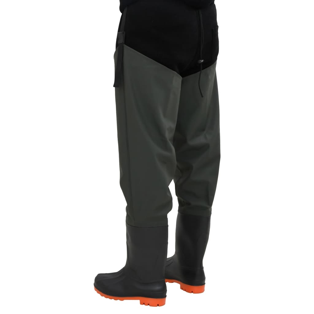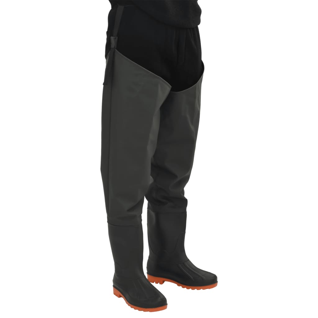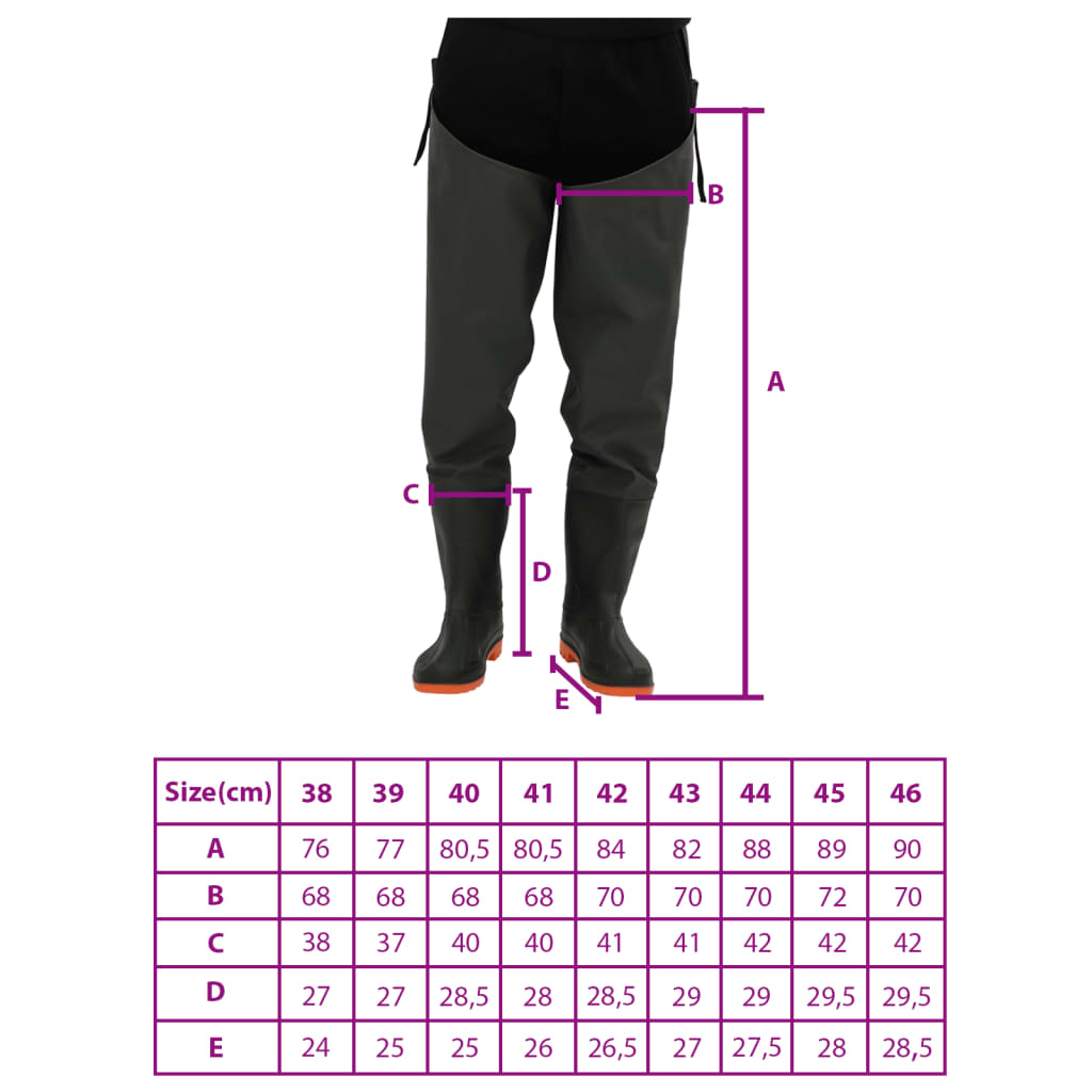 Die Hip Waders sind langlebig und flexibel und eignen sich zum Angeln, Jagen, für die Arbeit in der Landwirtschaft und mehr. Verstellbar und komfortabel: Diese Wathose hat verstellbare Hosenträger, die ein einfaches und schnelles An- und Ausziehen der Waders ermöglichen. Außerdem sorgen die Trageriemen für eine perfekte Passform und optimalen Tragekomfort.Wasserfest: Das speziell beschichtete Polyestergewebe ist von innen angenehm kuschelig und außen robust. Dank der gesteppten und versiegelten Nähte und der angebrachten Stiefel sind die Wathosen wasserbeständig.Vielseitig einsetzbar: Diese Hip Waders sind ideal für Angler und Landwirte, für Spaziergänge im Watt, im Wald und auf dem Land, aber auch für die Jagd usw.