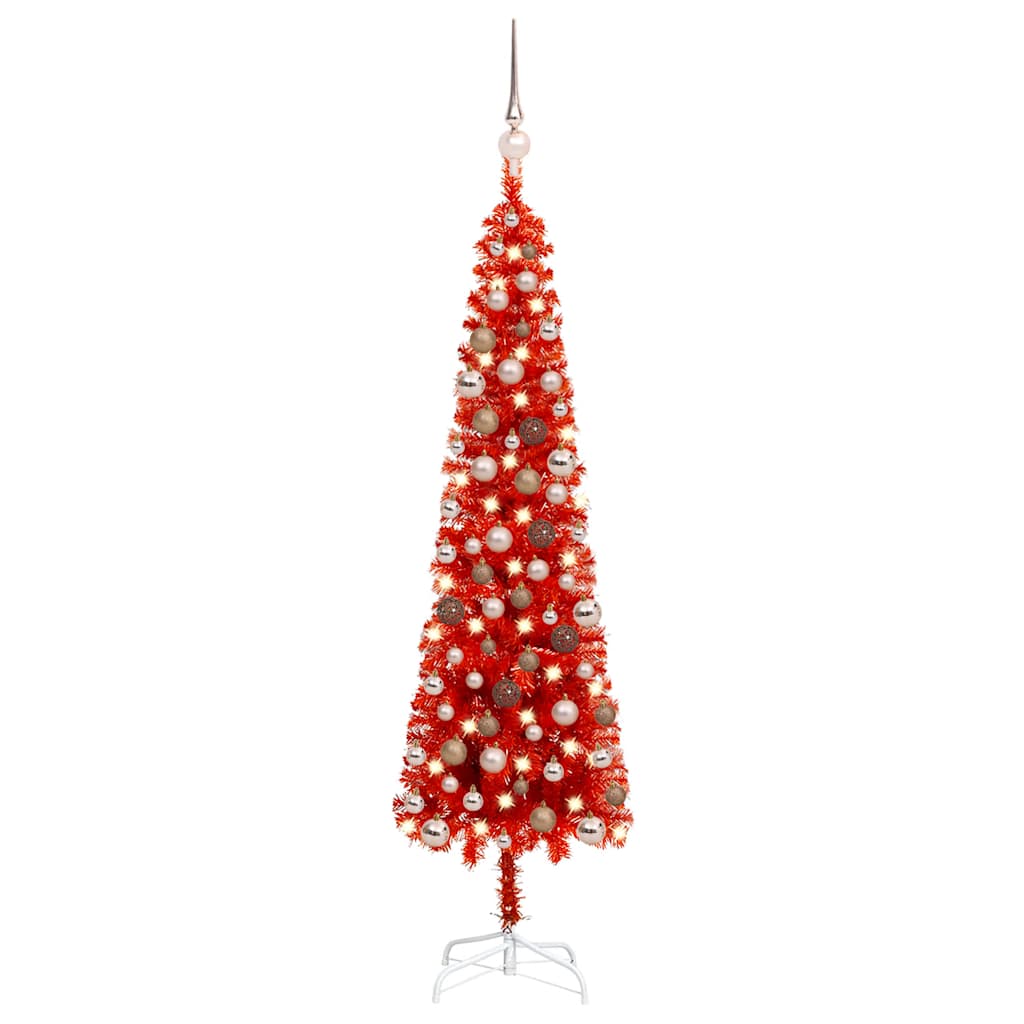 Dieser schmale Weihnachtsbaum wird ganz bestimmt zum echten Blickfänger unter deinen Weihnachtsdekorationen sein und eine einzigartige Weihnachtsatmosphäre schaffen! Dieser Weihnachtsbaum aus PVC ist in seiner Form und seinem Aussehen sehr naturgetreu gestaltet. Dank der verstellbaren Zweige kannst du deinen Baum in die perfekte Form bringen. Der mitgelieferte Christbaumständer aus Stahl verleiht deinem Baum eine optimale Stabilität. Der Weihnachtsbaum kann jedes Jahr wieder verwendet werden, was ihn im Vergleich zu einem echten Baum zu einer sehr günstigen Wahl macht. Mit seinen energieeffizienten LED-Lichtern leuchtet er wunderschön und schafft eine gemütliche Weihnachtsstimmung. Mit der schönen Spitze und den Kugeln ist der Tannenbaum ein echter Hingucker in deinem Zuhause. Viel Spaß zu Weihnachten ist mit diesem schönen Weihnachtsbaum garantiert! Hinweis: Das Produkt verfügt über einen USB-Anschluss, aber die zertifizierte 5-V-USB-Stromquelle ist nicht im Lieferumfang enthalten.